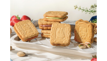 「クリームサンドクッキー」は、コク豊かでミルキーなホワイトソイショコラに森の実りを練り込んだ。ムーミン柄はクルミ味、リトルミイ柄はストロベリー味、スナフキン柄はピスタチオ味となっている。価格は、4個入り(クルミ味2個、ストロベリー味1個、ピスタチオ味1個)が1188円、6個入り(各2個)が1728円、9個入り(各3個)が2592円。