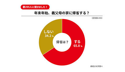 調査対象者に、年末年始に義父母の家に帰省するかを尋ねたところ、「帰省する」という回答が65.8%を占めた。