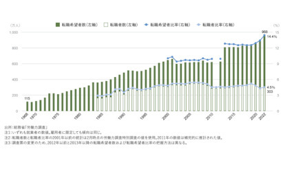 転職者と転職希望者の推移(出典:総務省)
