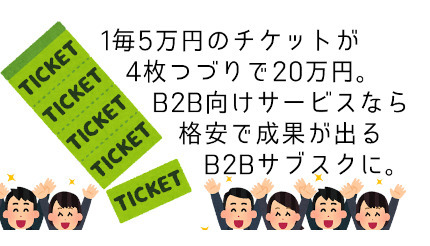 月額20万円のサブスクリプションサービスの例として、チケット1枚5万円の基本セットが4枚のサービスとします。この1枚のチケットで5万円前後の作業依頼ができるようにします。この5万円が競合よりもお得であれば、受注しやすいということになります。