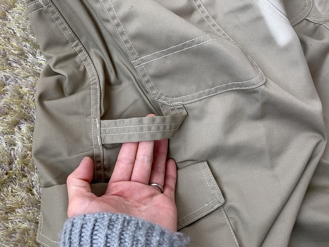 ポケットだけでなくハンマーループも搭載されています。カラビナを使えばさまざまなものを引っ掛けて使うことができます。