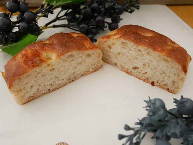 『バルミジャーノ フォカッチャ』は、バルミジャーノとじゃがいもを生地にたっぷりと練り込んだ、しっとりとした食感が特徴のフォカッチャです。