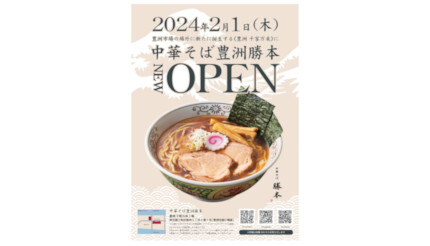 「中華そば勝本」の新店舗、「中華そば豊洲勝本」が「豊洲 千客万来」の3階に2月1日オープン