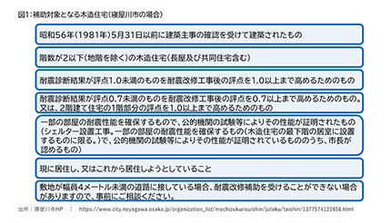 こうした旧耐震基準の木造住宅に対し、耐震改修計画の策定に要する費用(耐震設計)および耐震改修工事に要する費用の一部を補助してくれる(図1参照)。