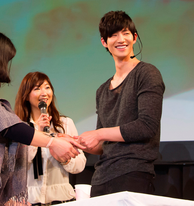 そこで、得意のハンド・マッサージを抽選で選ばれたふたりのファンにしてあげることに。無言で黙々とマッサージをするソン・ジェリムに、MCが「何かお話を……」と水を向けると、「ふたつのことを同時にはできません」と笑わせ、その後も「趣味は?」などぎこちない会話を続けた。そんな作業に没頭するソン・ジェリムの姿に、ファンは心をわしづかみにされたようだった。