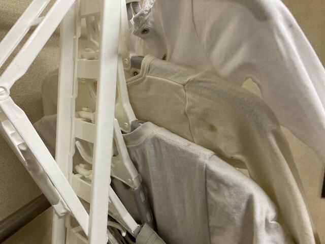 ハンガーを外すことができるほかに、洗濯物をつけたまま縦に吊るして収納することもできるんです。なので、Tシャツなどを全て干したままクローゼットに吊るしておき、全てのTシャツを着終わったらまた洗濯干しに使う、という循環で使えます。