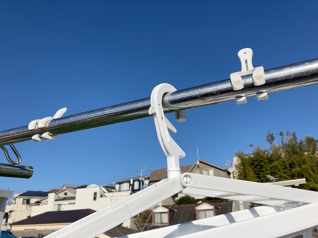推しポイントは、物干し竿ロックが付いていることです。筆者宅の外干し場所は風が強く、ハンガーが物干し竿から外れてしまうこともしばしばあります。