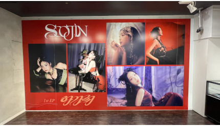 タワーレコード渋谷店5Fにあるスジン本人サイン入り大型パネル(筆者撮影)