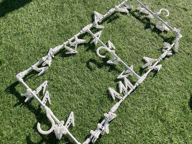 ホームセンターカインズからは、ポールに楽にかけられる「楽カケ」が特徴の「アルミ大型洗濯ハンガー 48ピンチ」(税込2,280円)をご紹介します。