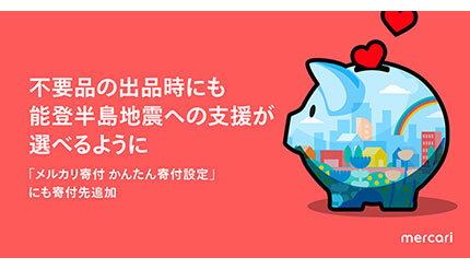 メルカリ、「メルカリ寄付 かんたん寄付設定」から能登半島地震による被災地への寄付が可能に