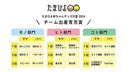 ベネッセコーポレーションは1月15日に、同社の運営する妊娠・出産・育児ブランド「たまひよ」から、「第15回たまひよ赤ちゃんグッズ大賞2024」全71部門のランキングとあわせて、「チーム出産育児賞」を発表した。