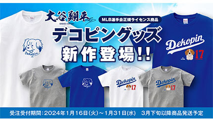 スペースエイジは1月16~31日の期間、大谷翔平選手の愛犬である「デコピン」Tシャツに、新たなオリジナルデザイン2点を追加し、同社の公式オンラインショップ「Space Age Online Shop」にて受注予約を受け付けている。