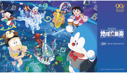 ロイヤルパークホテルズでは、仲間とともに楽しそうに音を奏でるドラえもんたちの交響楽が今にも聞こえてきそうな客室を用意するほか、今回の映画にちなんだ食事やテイクアウト商品の販売が行われる。