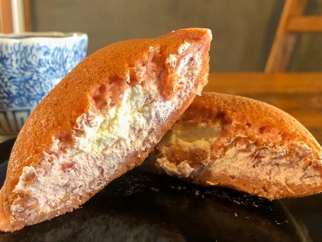ピンクと白い餡のどら焼きの見た目も可愛い