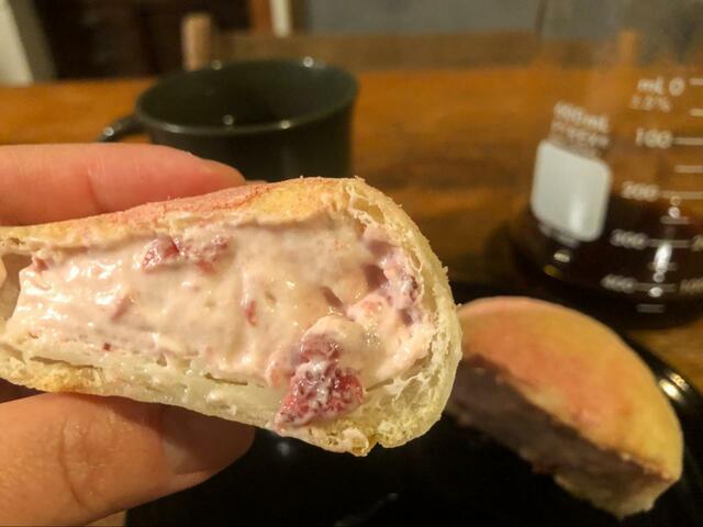 ホボクリム、という名前ですがシュー生地もなかなかに存在感のある美味しさで、しっとりとクリームを包み込んでくれています。苺果肉もいいアクセントに。