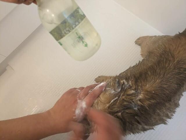 洗い上がりの香りは爽やかな青りんごのような香りで獣臭さをかき消してくれ、相性がいいように感じました。