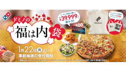 ドミノ・ピザは、節分の時期に合わせた「ドミノの“福は内”袋」を2月3日から11日まで数量限定で販売する。福袋の購入には、事前抽選販売への応募が必要。応募期間は1月28日までとなる。