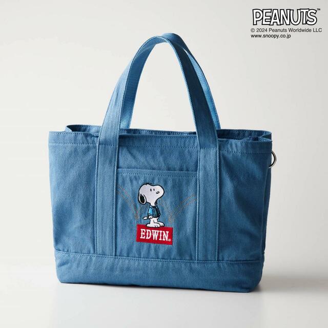 刺繍デニムトート「EDWIN/スヌーピー」は8,990円(税込)、刺繍デニムポーチ「EDWIN/スヌーピー」は4,590円(税込)。