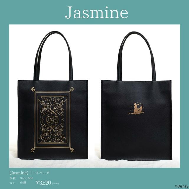 荷物がたっぷり入る大容量トートバッグも大活躍してくれそう♪ 横長タイプと縦長タイプがあり、縦長タイプには「アラジン」モチーフも。黒地にゴールドで、表には魔法のじゅうたんが、裏にはさりげなくアラジンとジャスミンがデザインされていてとってもおしゃれ!
