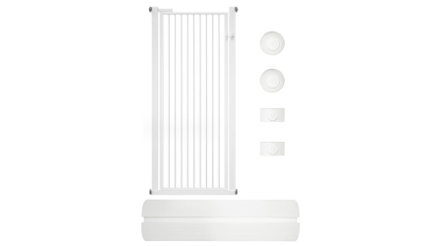 従来商品から、機能とデザインの両面で刷新を図り、細いフレーム、統一感のあるスタイリッシュなデザイン、インテリアに馴染むホワイトカラーを採用するとともに、通りやすい幅広ドア、開けやすい低めのドアロック、躓きにくい低めの下部フレームによって、快適な使い心地を実現した。