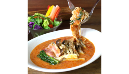 太陽のトマト麺、「~ポルチーニ茸&トリュフ香る~濃厚きのこポタージュトマト麺」を公式通販限定で再販