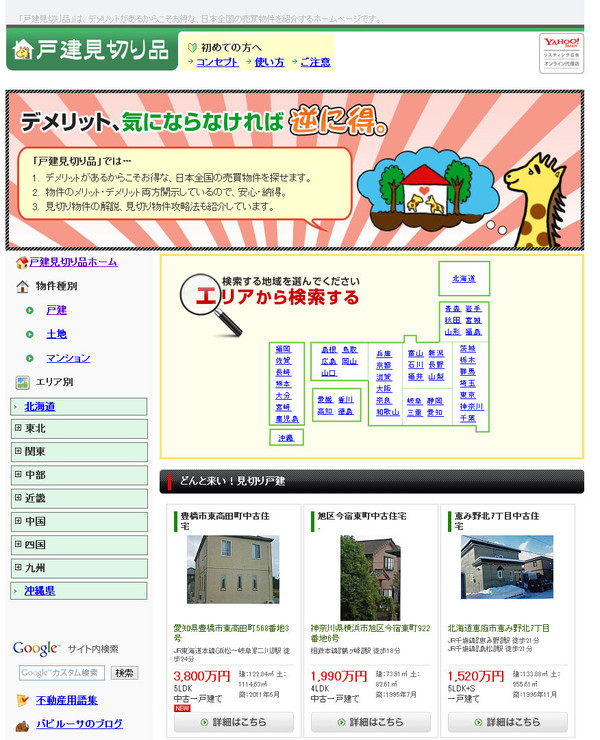 「デメリット、気にならなければ、逆に得」ということで、全国の未切り物件を探すことができます。