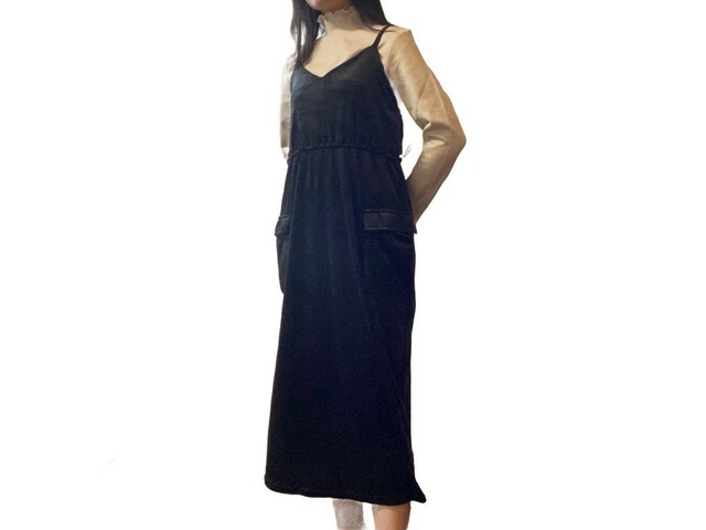 ワンピースは何にでも合わせやすいキャミソールタイプ。筆者の推しポイントはスカート部分の後ろにざっくりと入ったスリットです。これにサイドゴアやロングのブーツを合わせたらトレンドコーデができそう。
