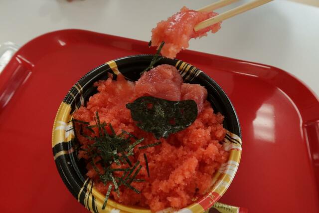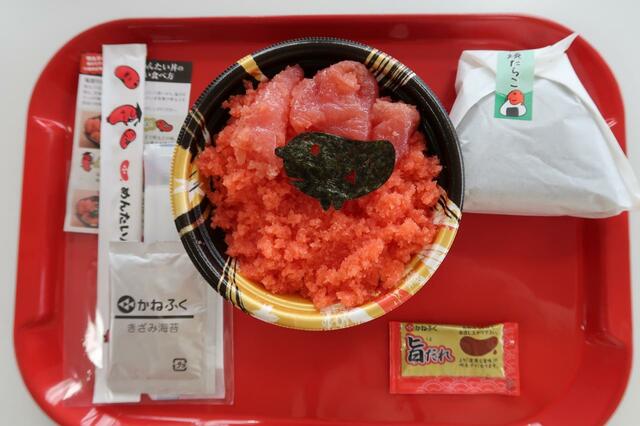 「鬼盛り!めんたい丼」(800円)と大きなおにぎりを注文してみました。