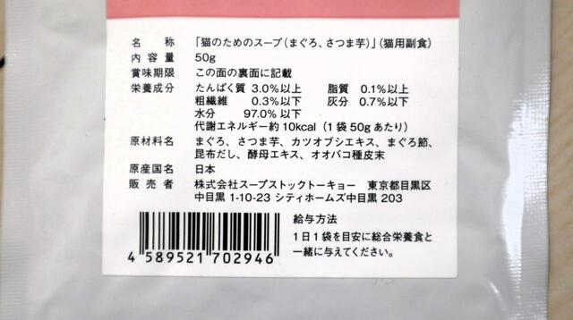 給与方法は「1日1袋を目安に総合栄養食と一緒に与えてください」とのこと。