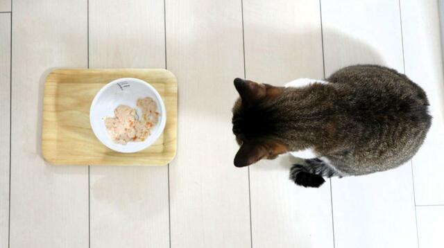 ボウルに入れると猫ちゃんの顔が見えづらいので、平皿に開けてみました。