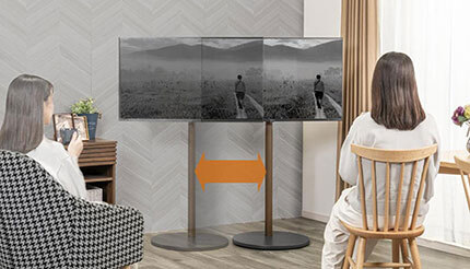 「ミニフラット&スリム」は、スタンドベースの厚みを1cm以下(約7mm)にすることでスリムでフラットなデザインを実現。また、スイーベル機能でテレビ画面の角度を自由に調整することができる。