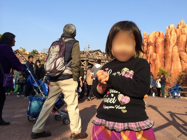 『ビッグサンダー・マウンテン』を楽しんだあと、余裕のポーズを決める娘 ©Disney