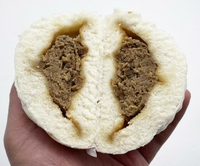 その名もズバリの『肉まん』は3個セットで1080円(税込)。1個あたり360円(税込)となるわけですが、この低価格に対して肉まんの餡はボリュームたっぷり。やや濃いめの味付けと肉感多めのパンチがヤミツキになります。