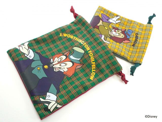 巾着セットは、ギデオンとファウルフェローの2枚セットで、それぞれギデオンとファウルフェローをイメージしたカラーのチェックになっています。