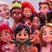 背景には、赤・青・黄色を配置し、白雪姫らしさを醸し出しています。
