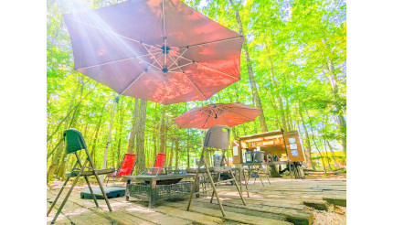 森の中で焚き火をしつつカフェメニューを楽しめる「グランピングカフェ“たき火”」がオープン