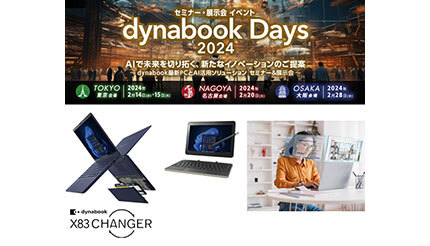 Dynabookは、セミナー・展示イベント「dynabook Days 2024」を、2月14日・15日に東京(東京ビッグサイトTFTホール)、2月20日に名古屋(名古屋コンベンションホール)、2月28日に大阪(梅田スカイビル タワーウエスト)で開催する。イベントでは、同社最新のXR(eXtended Reality)技術とAI技術を活用した新しいビジネス向けソリューションを提案する。
