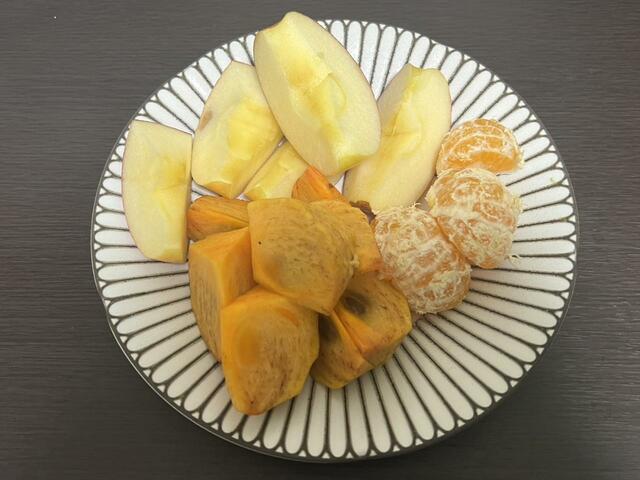 夜:リンゴ(1個)、柿(1個)、みかん(1個)
