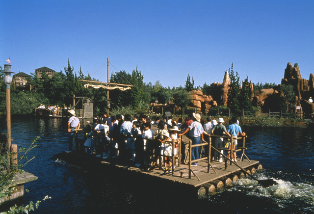 トムソーヤ島には、いかだに乗って渡る ©Disney