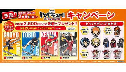 『劇場版ハイキュー!! ゴミ捨て場の決戦』の公開を記念し、回転寿司チェーン「くら寿司」で期間限定でアニメ『ハイキュー!!』とのコラボキャンペーンを2月9日に開始する。期間は2月29日までで、なくなり次第終了となる。