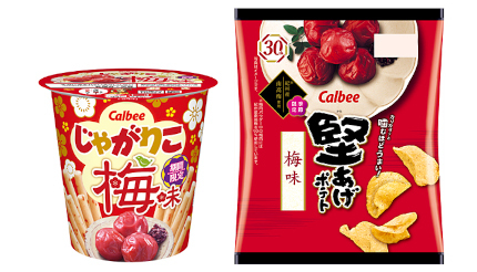 カルビーは、梅の開花時期に合わせて人気ブランドからこの時期だけの特別な「梅味」の新商品「じゃがりこ 梅味」「堅あげポテト 梅味」を全国のコンビニエンスストアで2月5日から先行で期間限定発売した。コンビニエンスストア以外の店舗では、2月12日から期間限定で発売する。なお、じゃがりこ 梅味が4月中旬で終売予定。堅あげポテト 梅味が6月中旬で終売を予定している。