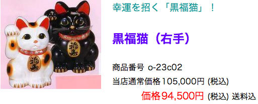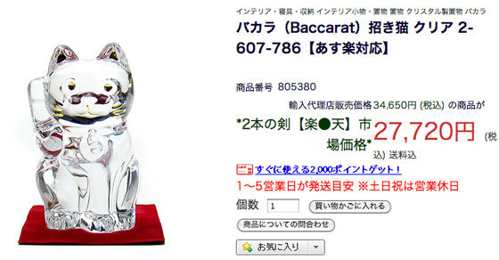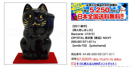 クリア招き猫の価格は2~3万円だけど、ネイビー招き猫は6~7万するらしい。
