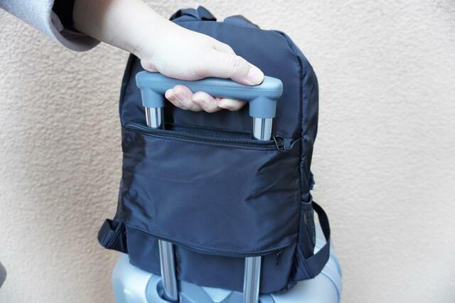 もちろん、2泊、3泊以上の旅行でも背面ループがあるリュックならキャリーケースに装着して持ち歩けますね。