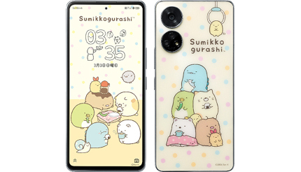 「すみっコぐらしスマホ」は、「あんしんファミリースマホ」と「すみっコぐらし」のコラボレーションモデル。充実の機能はそのままに、「すみっコぐらし」の壁紙や時計デザイン、フォトフレームで楽しめるほか、オリジナルの本体ケース(2種)やスマホショルダーなどのスペシャルグッズが付属する。カラーはクリームのみ。