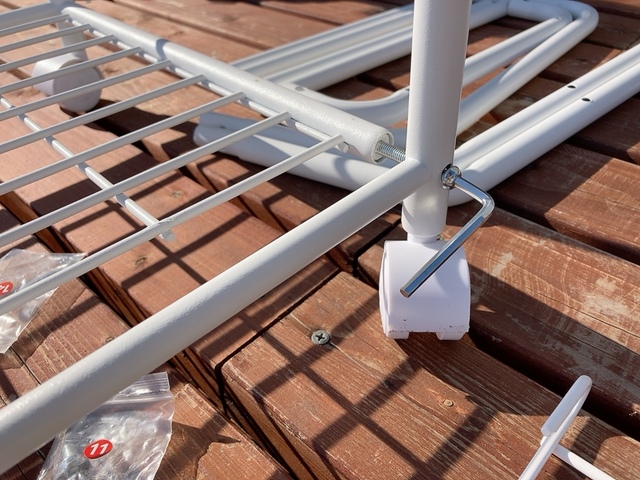 工具の用意は不要で、同梱されていた六角レンチを使用。スチール製ですが組み立て部品一つひとつはそこまで重くないので、女性一人でも疲れることなく組み立てできました。