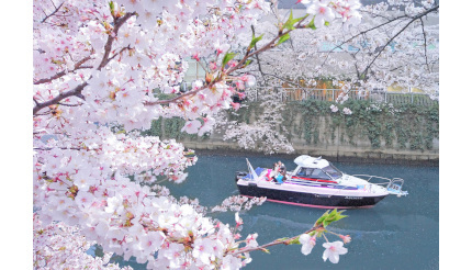 貸切クルーザーから目黒川の桜を楽しめるお花見企画、スパークリングワイン「シャンドン」とコラボで開催