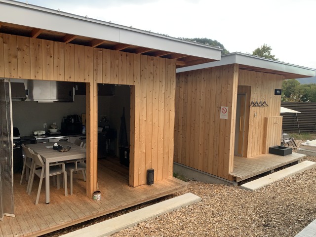敷地内にはキッチン棟があり、冷蔵庫や電子レンジ、BBQコンロ、ウォーターサーバーのほかに調理に必要な道具が一通り揃っています。
