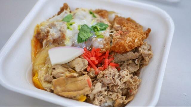 なんと1つの丼ぶりに「カツ丼・牛丼・親子丼」と丼トリプルコンボの至高のメニュー!
