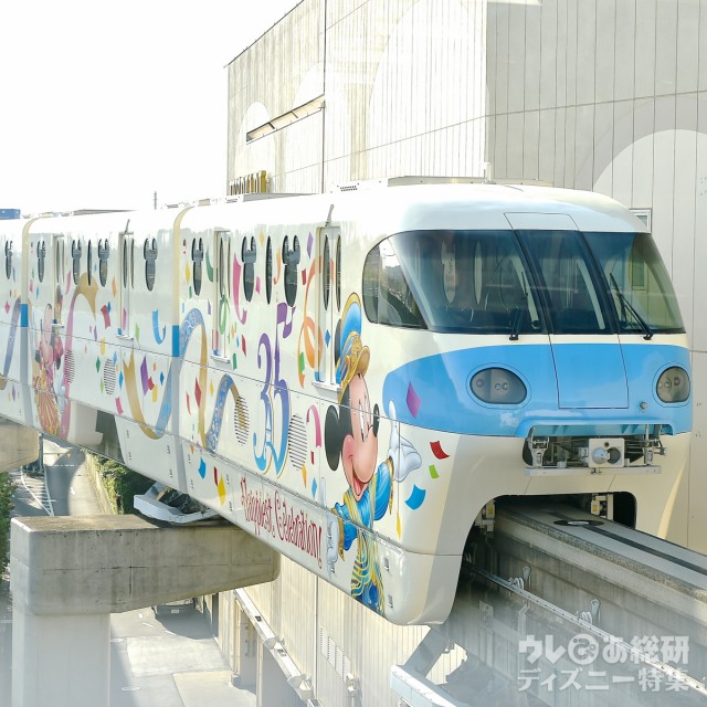 リゾートをめぐるモノレール「ディズニーリゾートライン」でも35周年の特別なデコレーションが楽しめます。