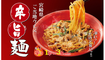 M&Sフードサービスは2月14日~3月12日の期間、同社の運営する定食チェーン「定食屋 宮本むなし」「めしや宮本むなし」(一部を除く)において、宮崎県のご当地グルメ「辛麺」をベースに「宮本むなし」風にアレンジした「辛旨麺(からうまめん)」と、ご飯と小鉢が付いてくる「辛旨麺定食」を販売する。価格は「辛旨麺」が790円、「辛旨麺定食」が920円。
